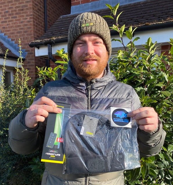 This is Lee from Barnsley, He won this RidgeMonkey Vault Lite IR180 and a RidgeMonkey Beanie for FREE, YES FREE!! Taking 1st place in our 4 prize winners free giveaway!! Congratulations bud!!