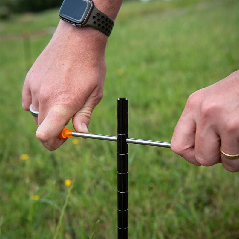 Fox Pro Marker Sticks, high grade aluminium auger point marker sticks with a stainless steel T-bar integrated into the sticks for compact storage. With machined groves along the length to reduce line slippage. The Lite flow Orange visual cap has a cavity to accept a 25mm isotope with a rubber bung provided holding everything securely in place. Supplied with a rope featuring 3 orange sliding markers, numbered 1-3. Supplied in polyester storage bag.