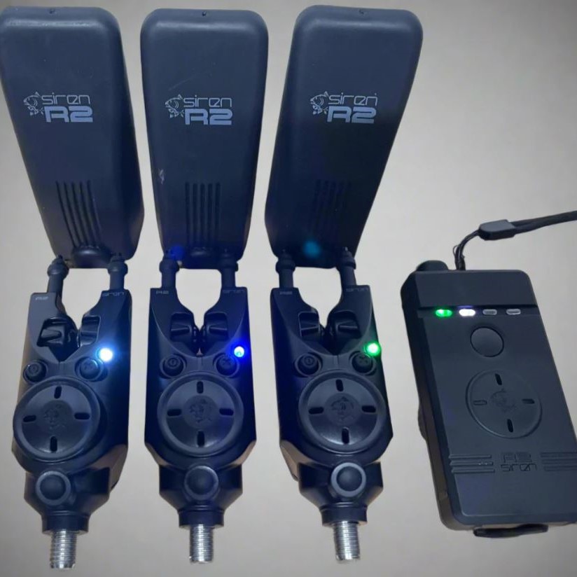The Nash Siren R2 series compact bite alarms, available in a two or three rod presentation set complete with a matching receiver. The R2 is ideal for anglers that prefer a smaller alarm head, and has a screw thread for adding Nash bobbins and slap heads. Each alarm is capable of switching between five different LED colour options, so your no longer stuck with the colour you order. With six sensitivity settings, four volume and five tone settings there’s plenty of scope to tweak your setup. There’s also a low battery warning gives you plenty of notice before you run out of juice