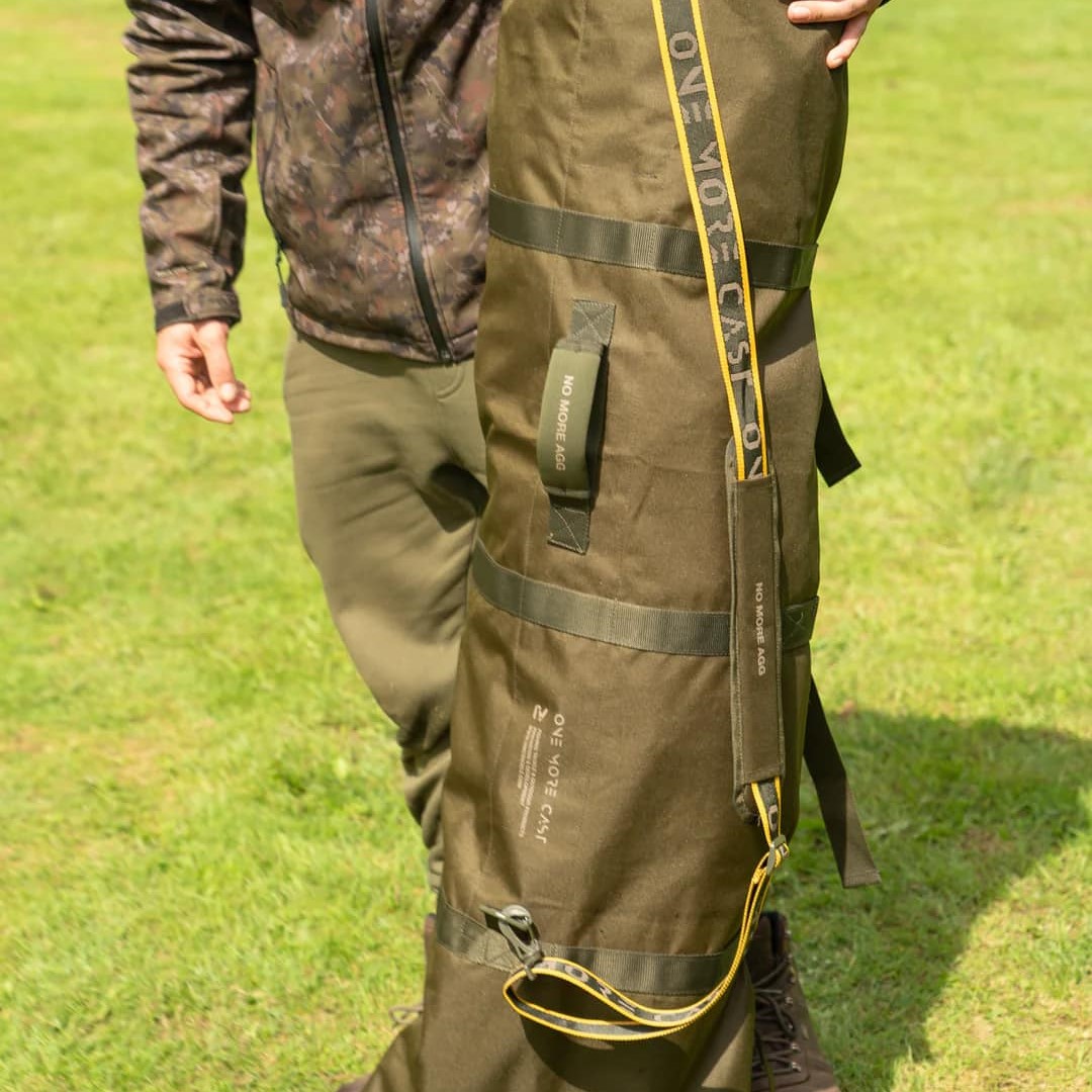 We all know this feeling? It’s wet, we’re in a rush, we want the Bivvy, Poles & whatever else stowed away in double quick time? Nothing worse than a tight Bivvy bag hey at this point? The NO AGG BAG has been made with premium materials, webbing, buckles and straps to help you ESCAPE in true OMC HEIST Luggage style!
